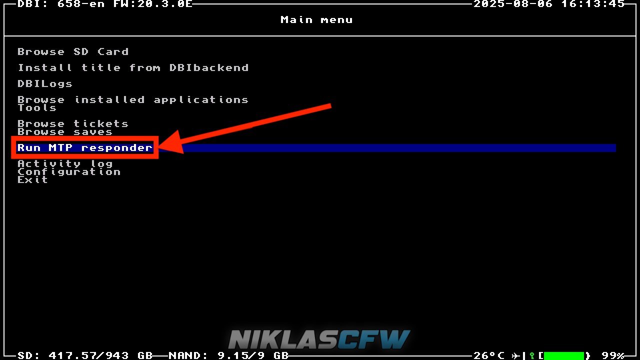 - Geh auf Run MTP Responder und bestätige die Auswahl durch Bestätigung mit der A-Taste
