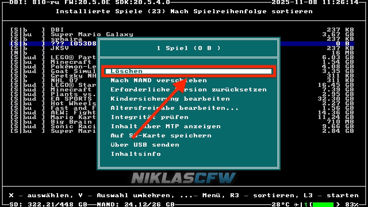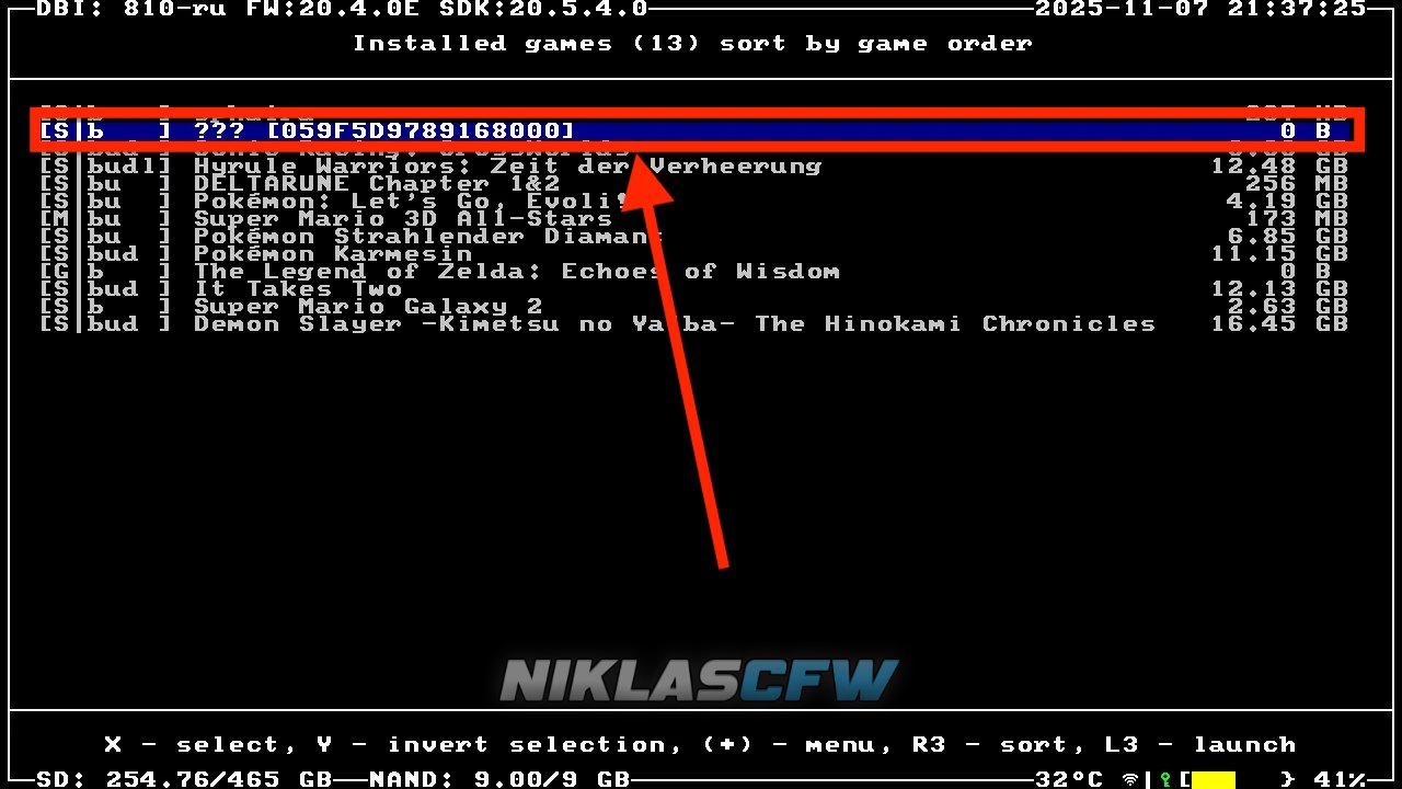 Wenn du Spiele mit DBI installierst (z. B. per USB, MTP oder Netzwerk), kann es in seltenen Fällen passieren, dass die Installation nicht korrekt abgeschlossen wurde.