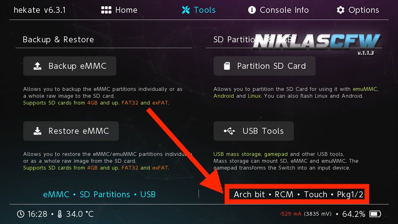 Nun startet die Switch jedes Mal direkt in Hekate mit der RCM Methode.