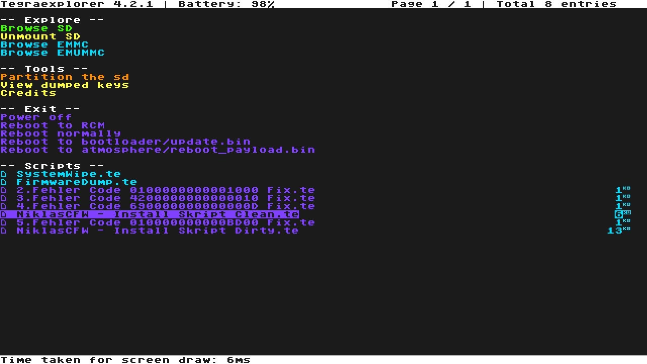 - Wähle ganz unten NiklasCFW - Install Skript.te aus
