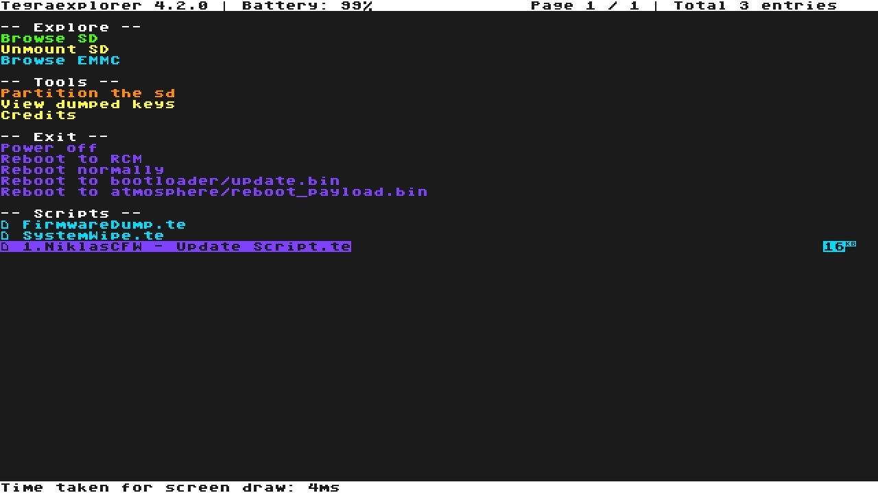 - Wähle ganz unten 1.NiklasCFW - Update Script.te aus