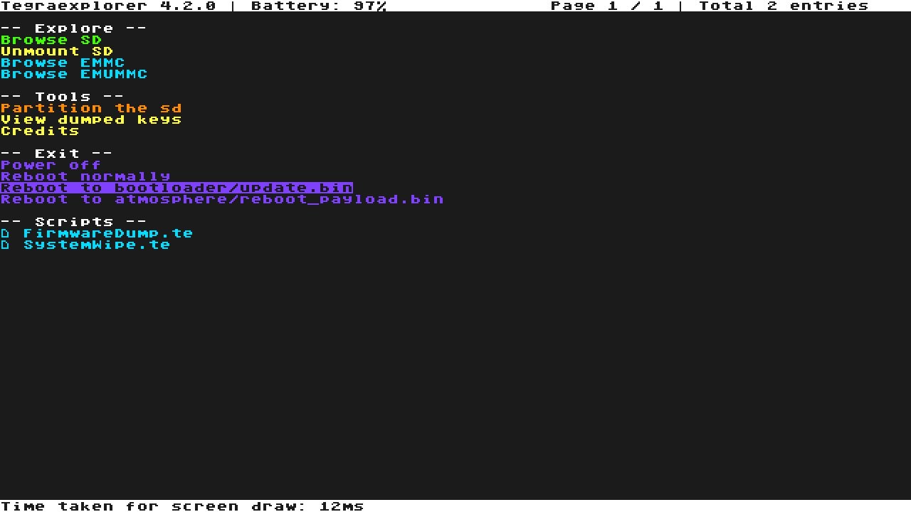 - Im Launch Menü angekommen, wähle Tegra Explorer aus