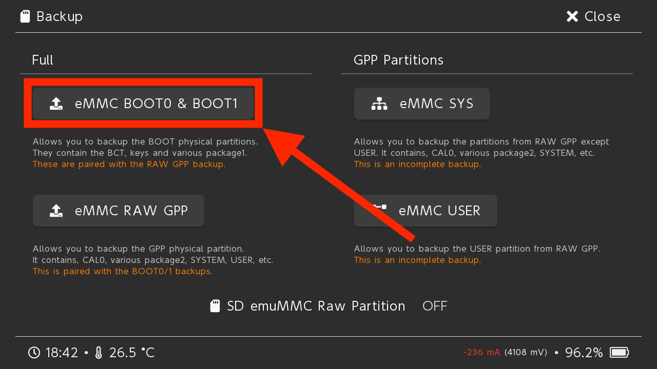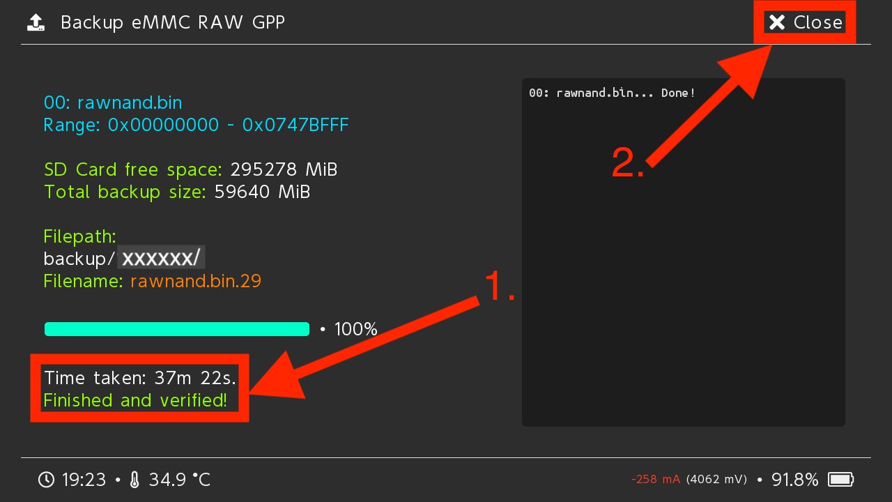 Ist das Backup erstellt, drücke oben rechts auf Close