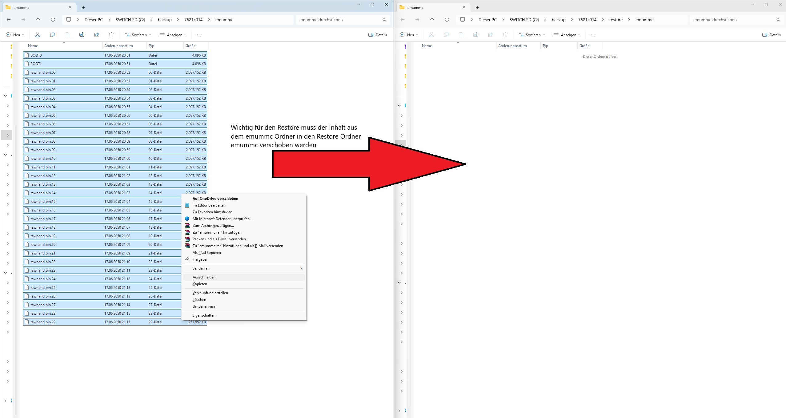 emummc-Ordner muss in den Restore-Ordneremummcverschoben werden.